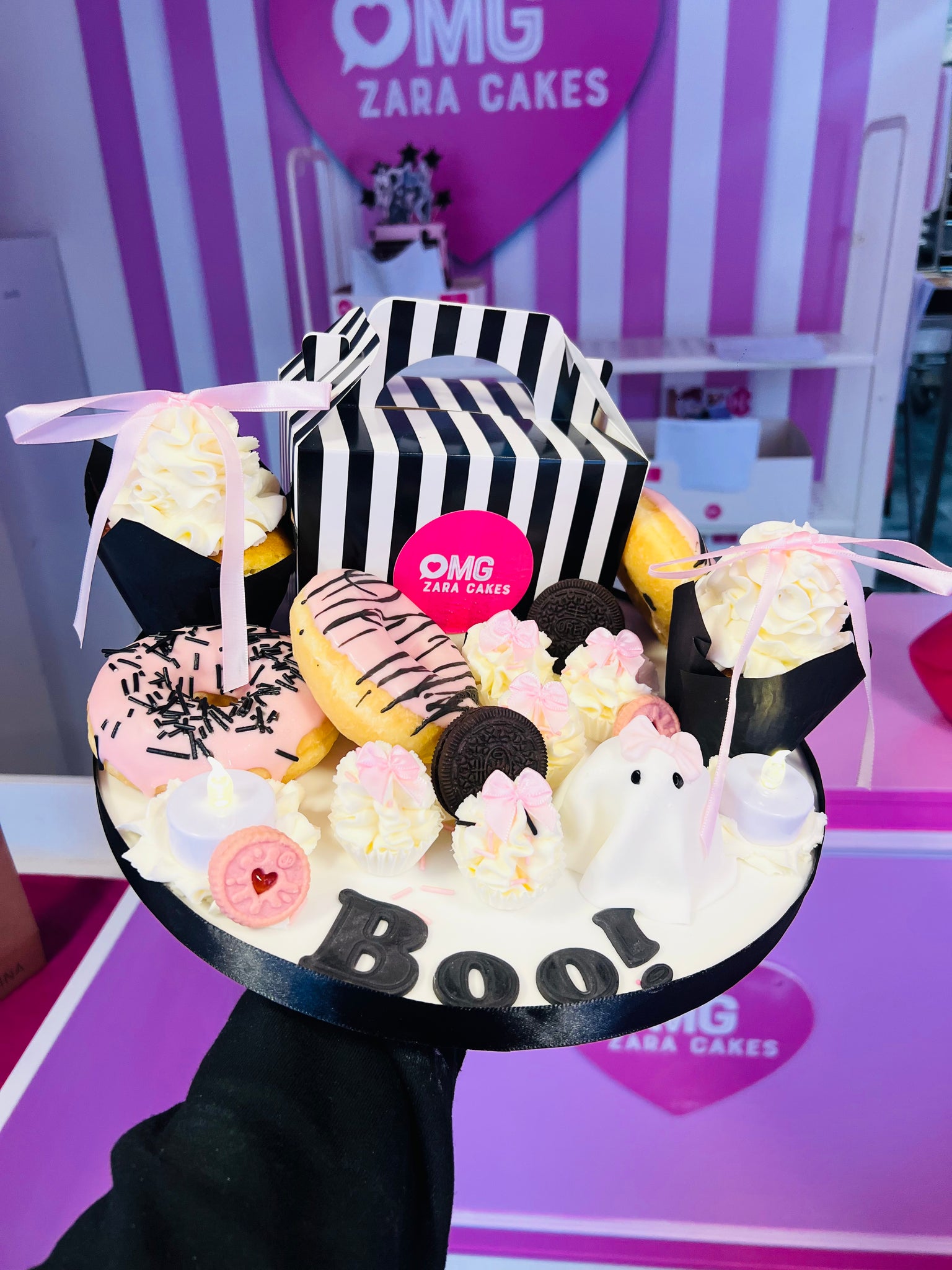 The Boo Board Workshop offers a festive mix box perfect for Halloween parties, featuring cupcakes, doughnuts, and mini cupcakes. Each treat comes with a sugarpaste ghost decoration, allowing guests to enjoy fun, edible crafts while indulging in delicious party food. This curated selection is ideal for adding a creative and spooky touch to your celebrations.